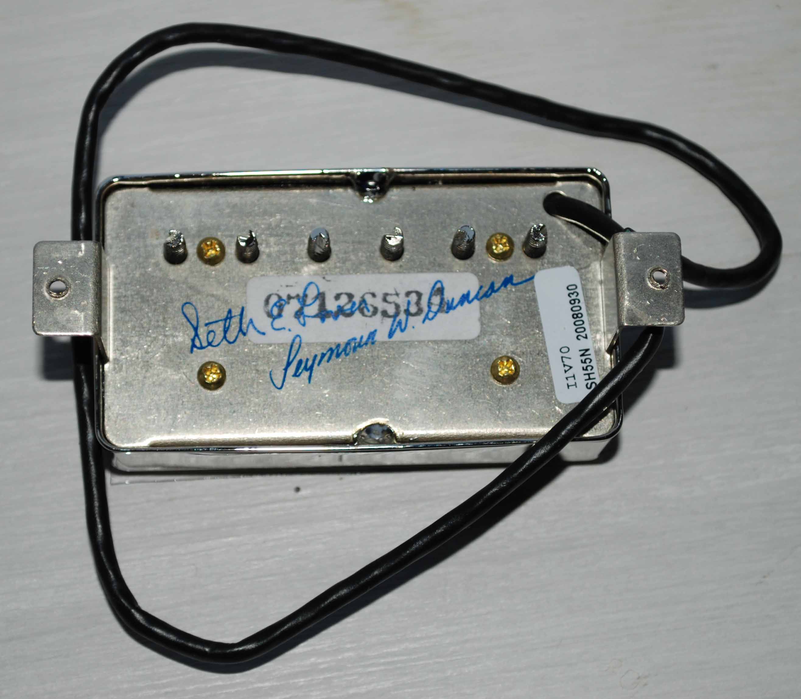 2 micros humbuckers Seymour Duncan : Hot rails SSTHR en bridge et Seth Lover SSH-55 en neck, avec split (simple bobinage pour un son tele "twang" ou double bobinage) sur les boutons de volume et tonalité,
