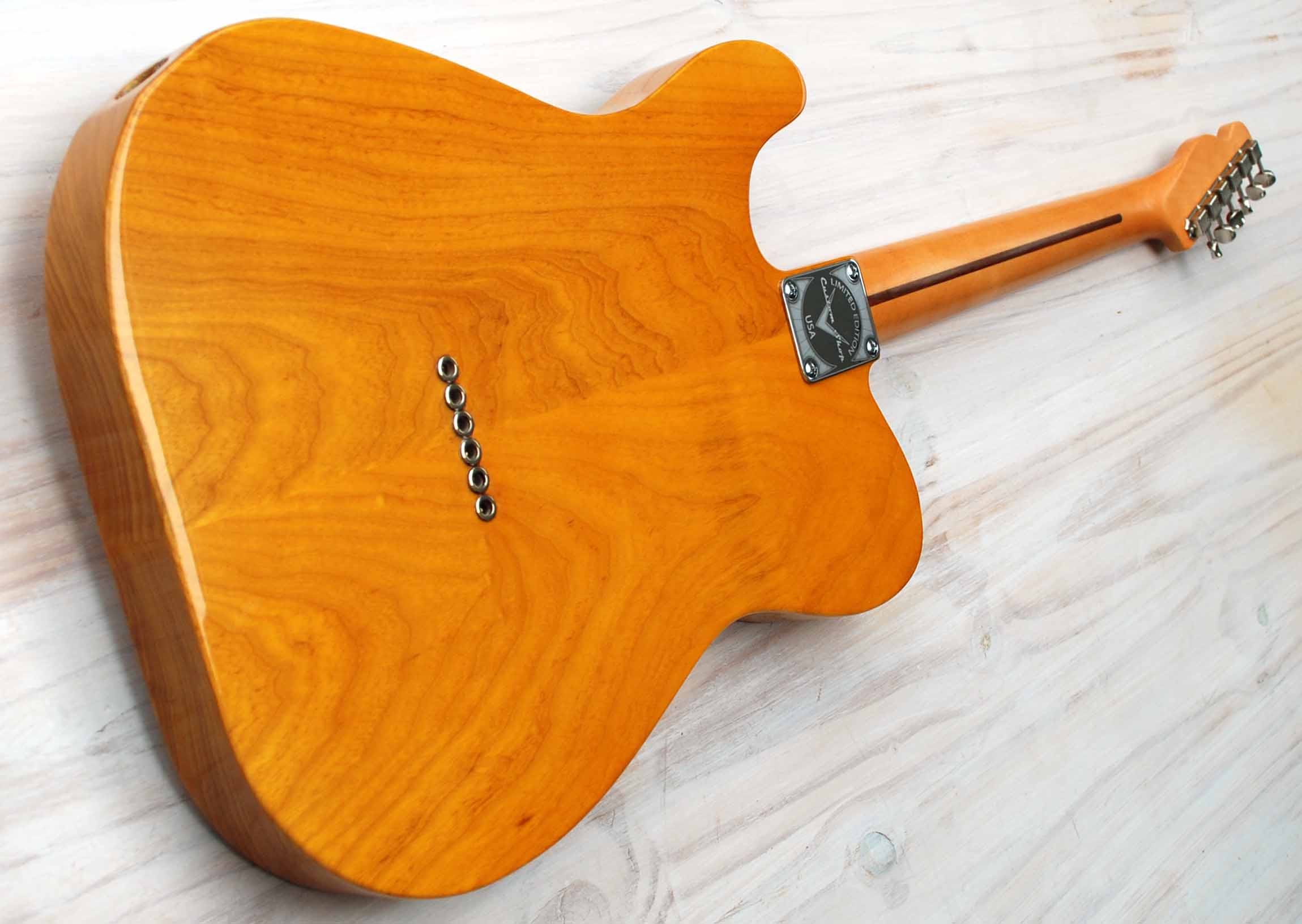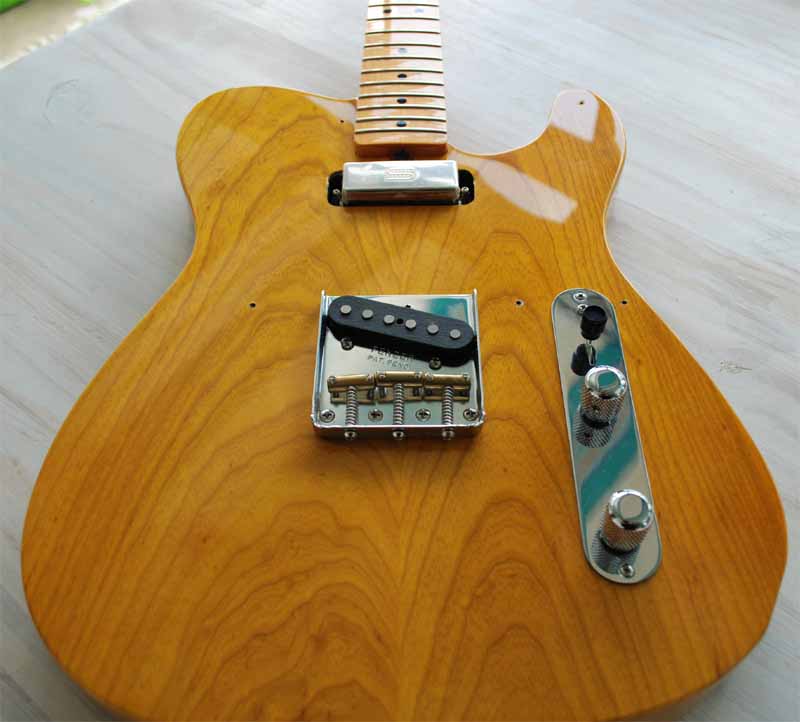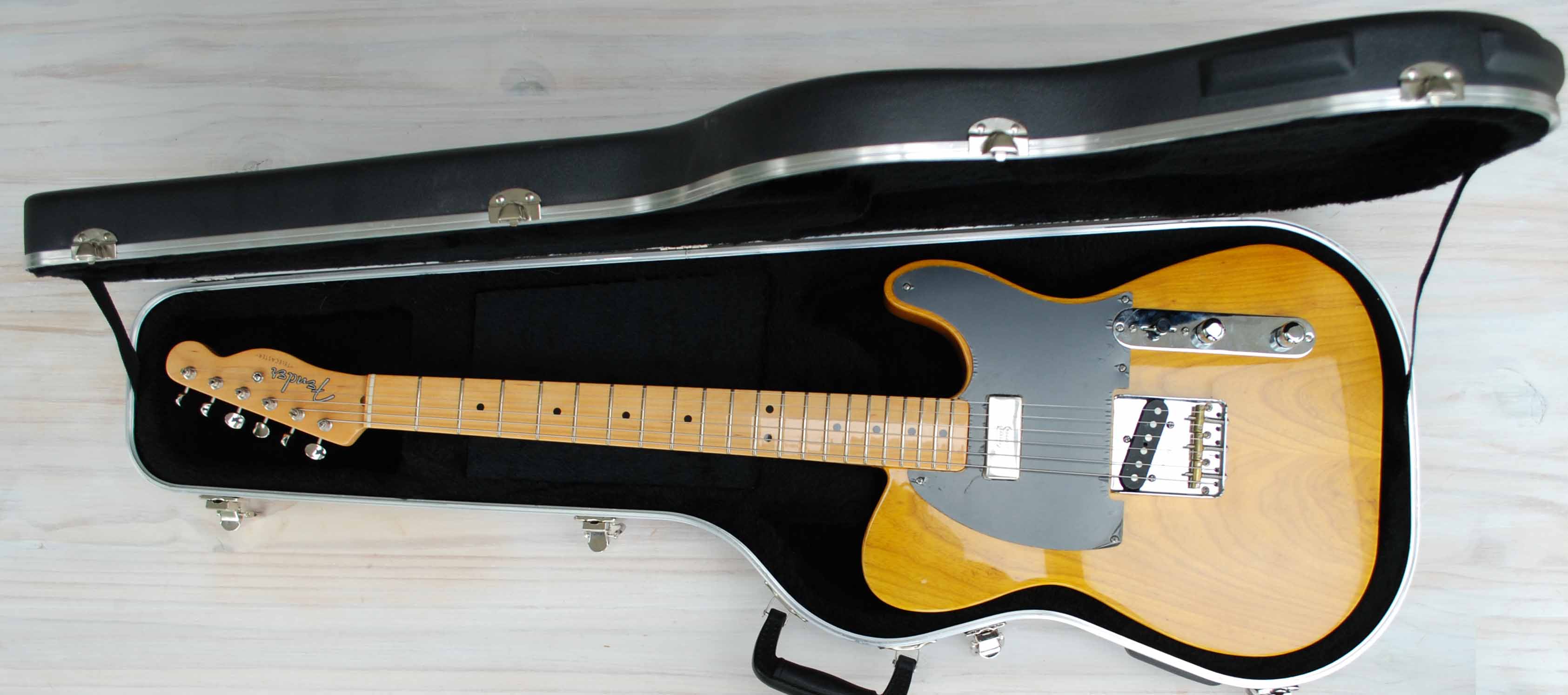 Je vous propose une guitare similaire avec corps luthier vintage en frêne USA des marais de Louisiane (Swamp Ash) 2 pièces (photos mises à jour, poids du bois 1,9 kg = 4 Lbs 2 oz) vernis "Luthier" nitrocellulose + gomme laque, avec toutes les autres pièces de la "Hot Rod" d'origine (genuine) Fender (sauf le pickguard noir vintage 1 pli qui provient de chez Steward Mc Donald)