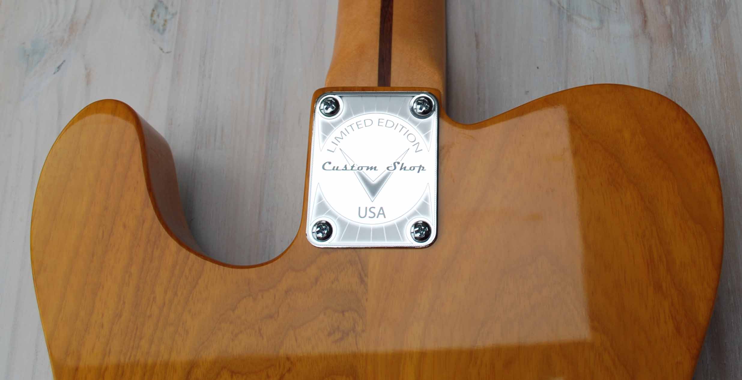 Livrée avec un neck Plate gravé "Custom Shop" (non -Fender !)
