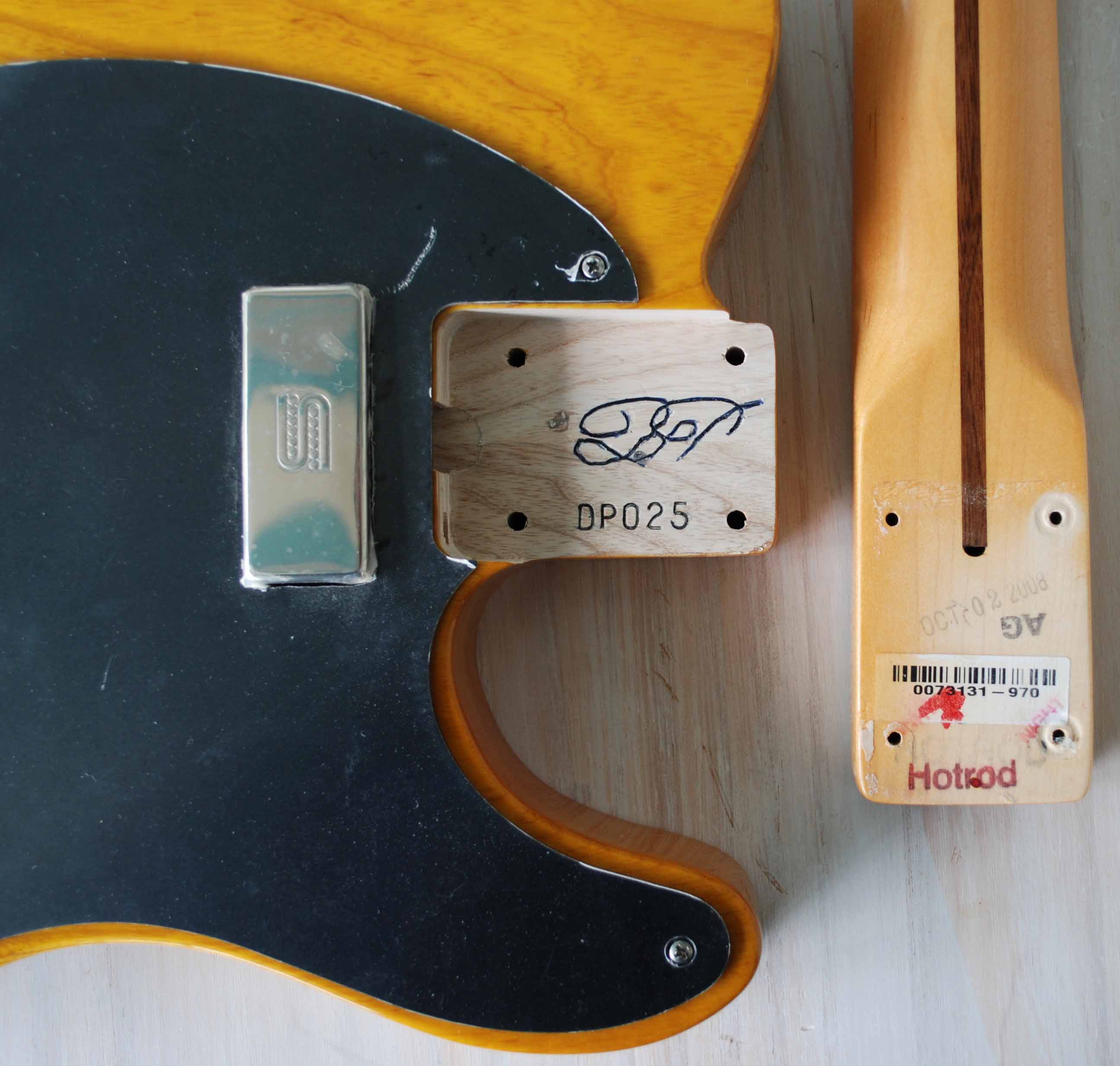 Manche Fender Hot Rod signé et identifié par son code-barre. Le corps est