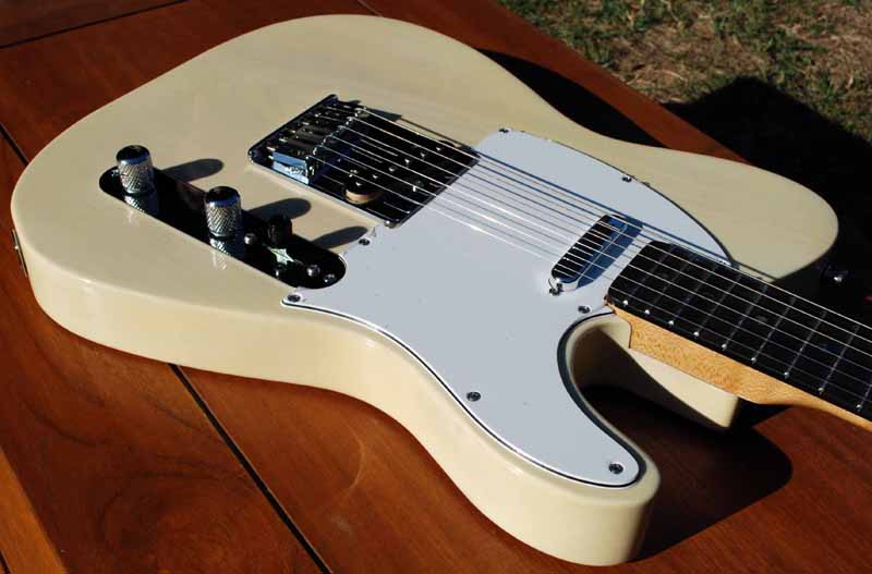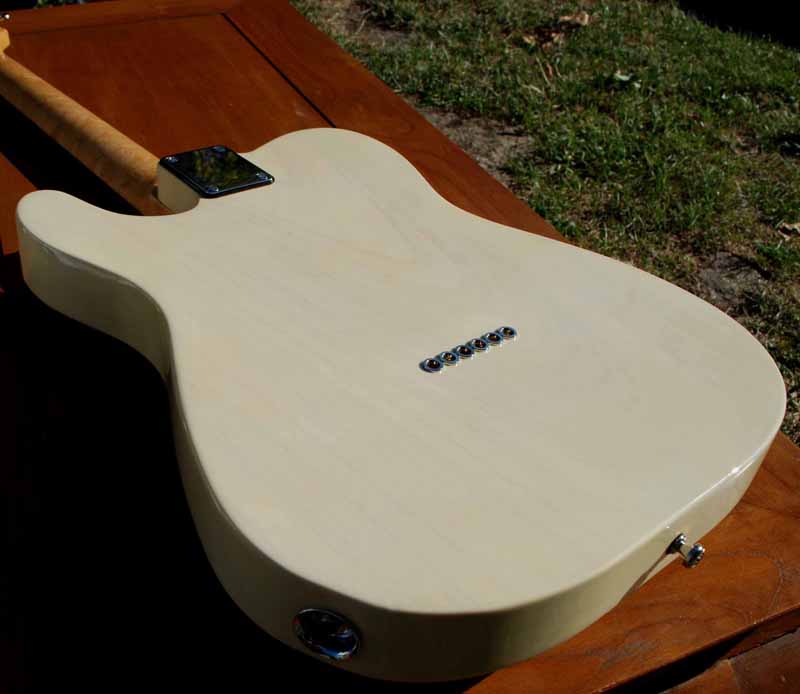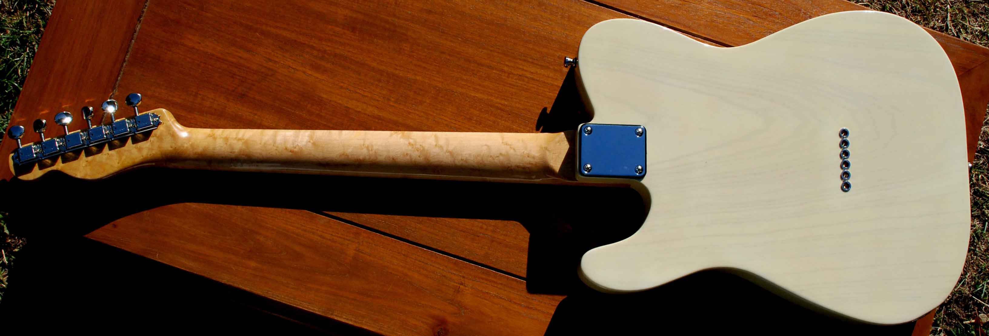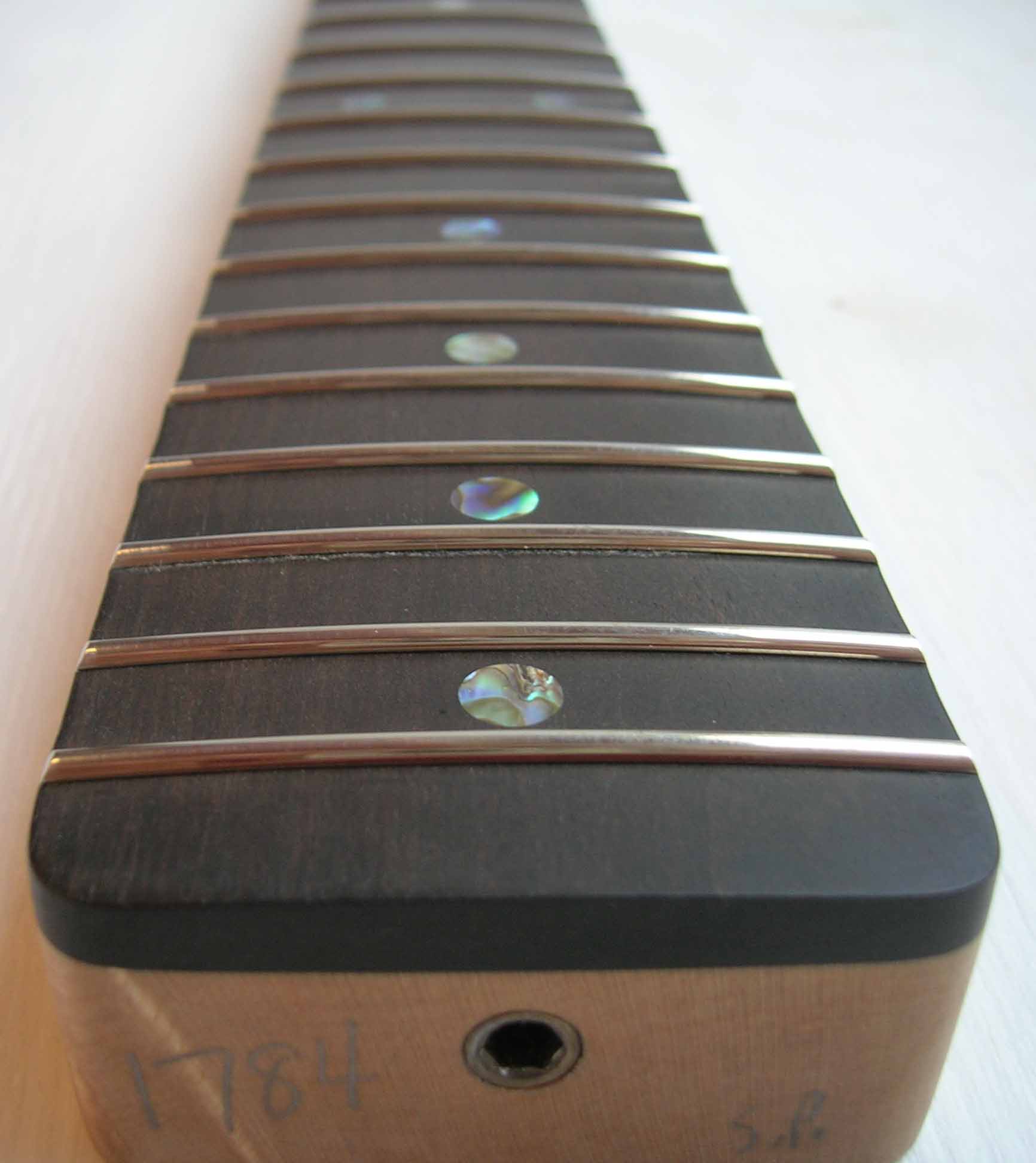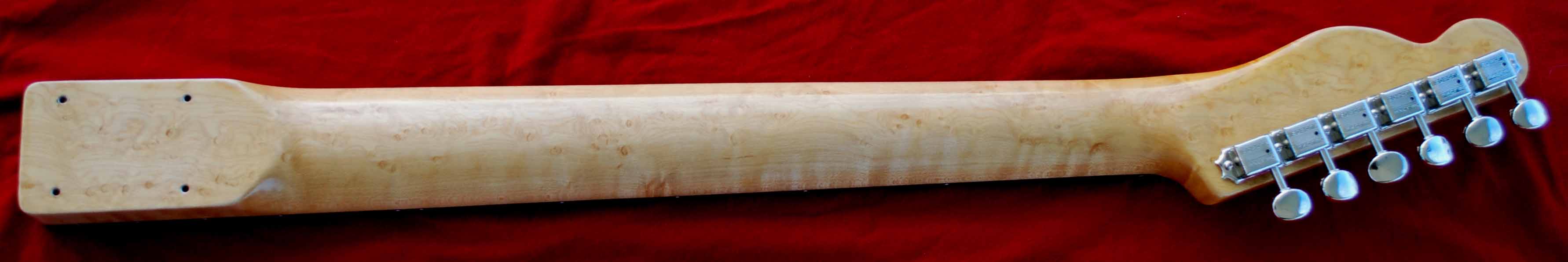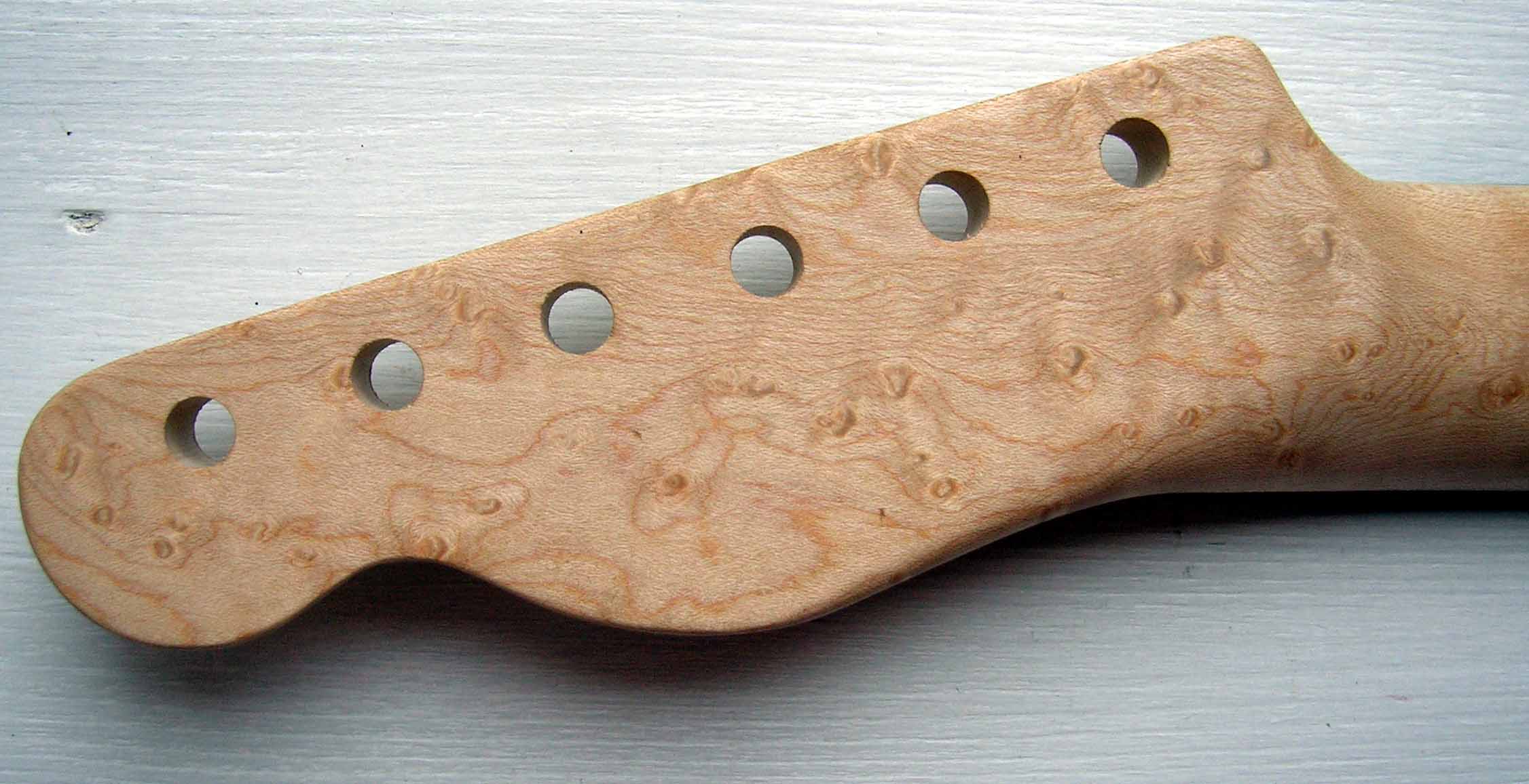 Musikraft "Premium" sera vernis selon votre choix (nitro-cellulose DP) Ce manche exceptionnel sera au moins de la classe d'un Fender DeLuxe, et même au delà (Artists series - ie. GE Smith, Hot Rod, Custom Shop) : Erable moucheté - flamé "byrd's eye", touche en ébène noir avec incrustation d'abalone, sillet en os (offert). Profil de type "American Standard": Radius 9,5", 21 frettes "Medium 6105" contour "medium C" avec une épaisseur du manche de 83" (21,12 mm) à la 1 ere frette to .92" (23,4 mm) à la 12 eme. Largeur du manche 1 11/16" au sillet et 2 3/16" au bout du talon. Truss rod double action réglable au talon. Un manche de rêve !! valeur avec vernis cellulo : 375 + 50 euro options (Custom 5) = 425 euro (mécaniques non comprises)