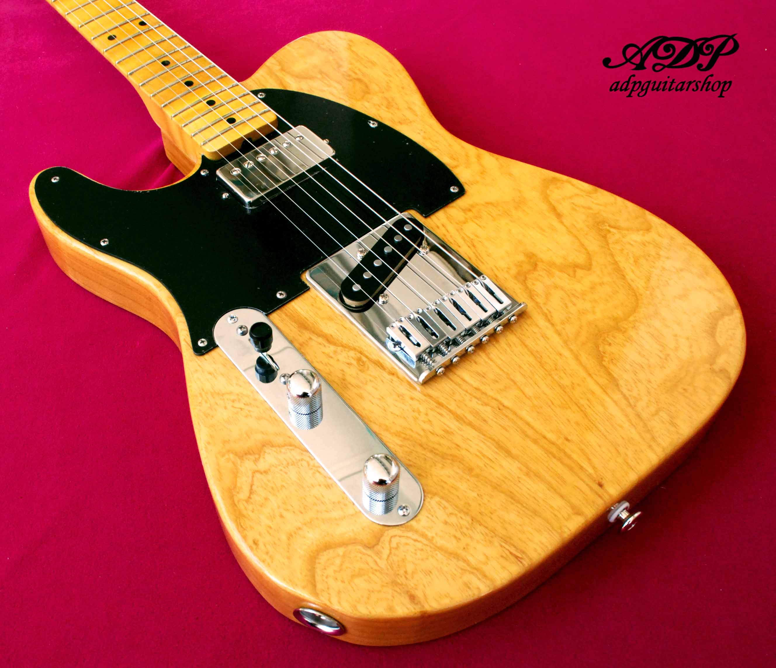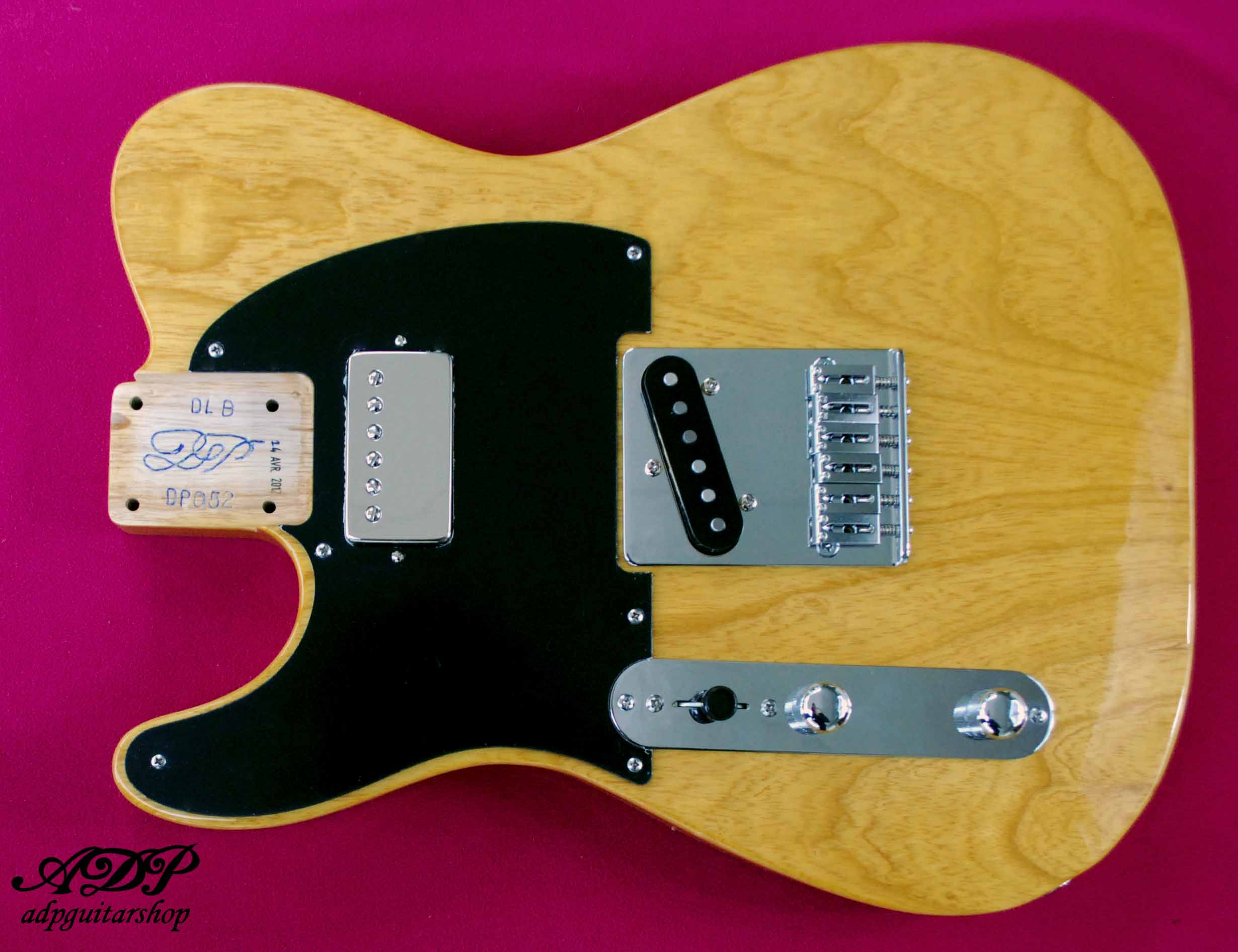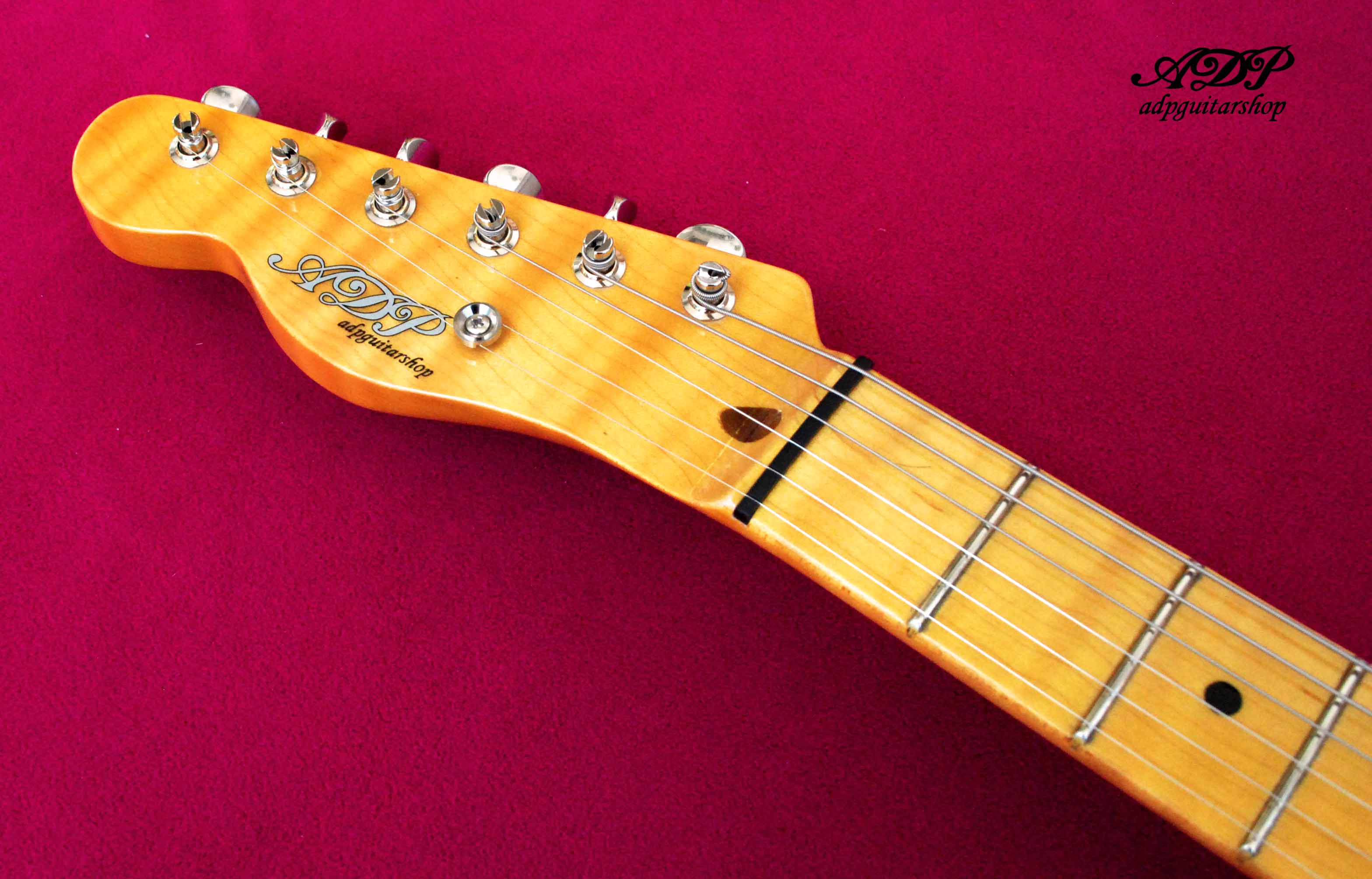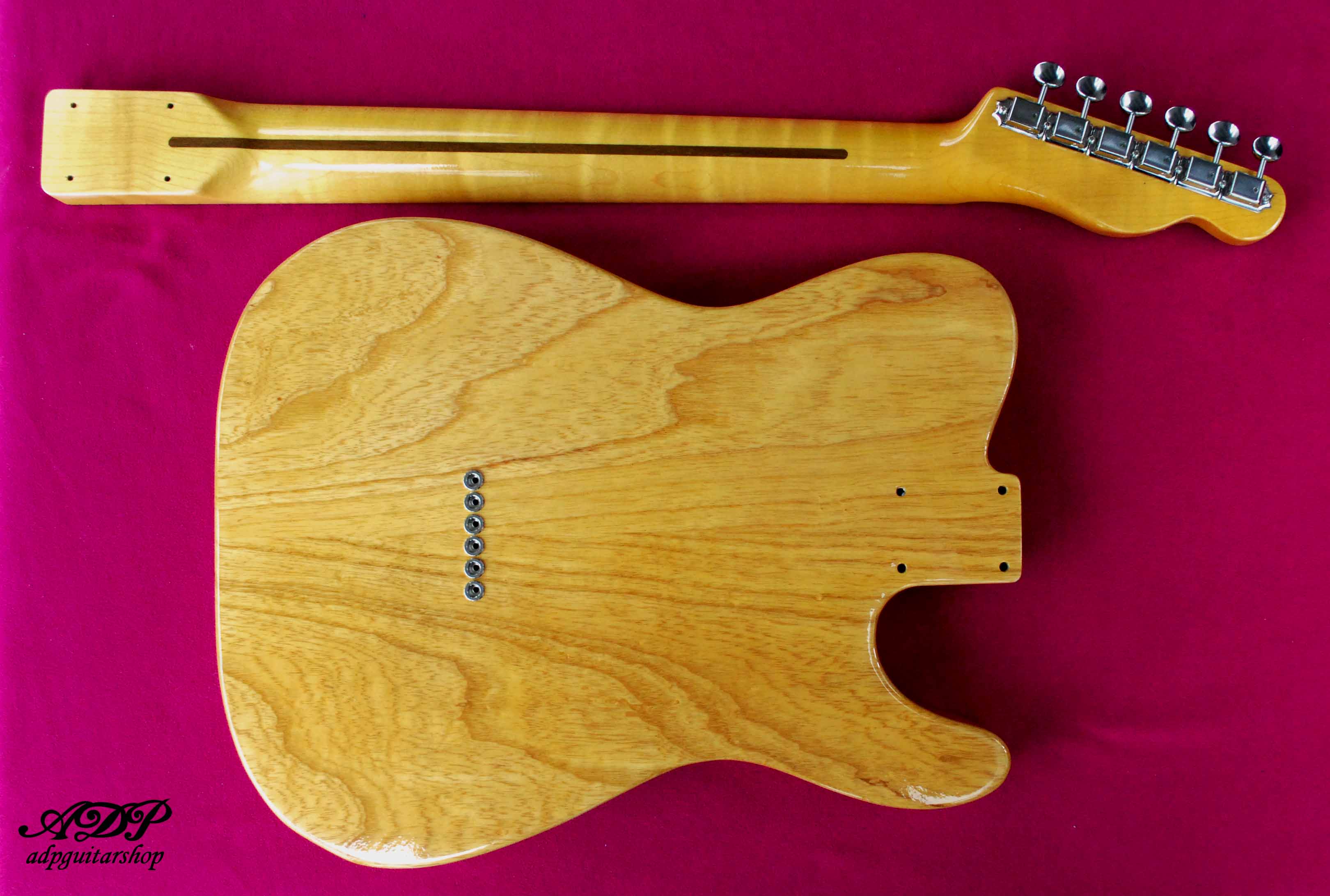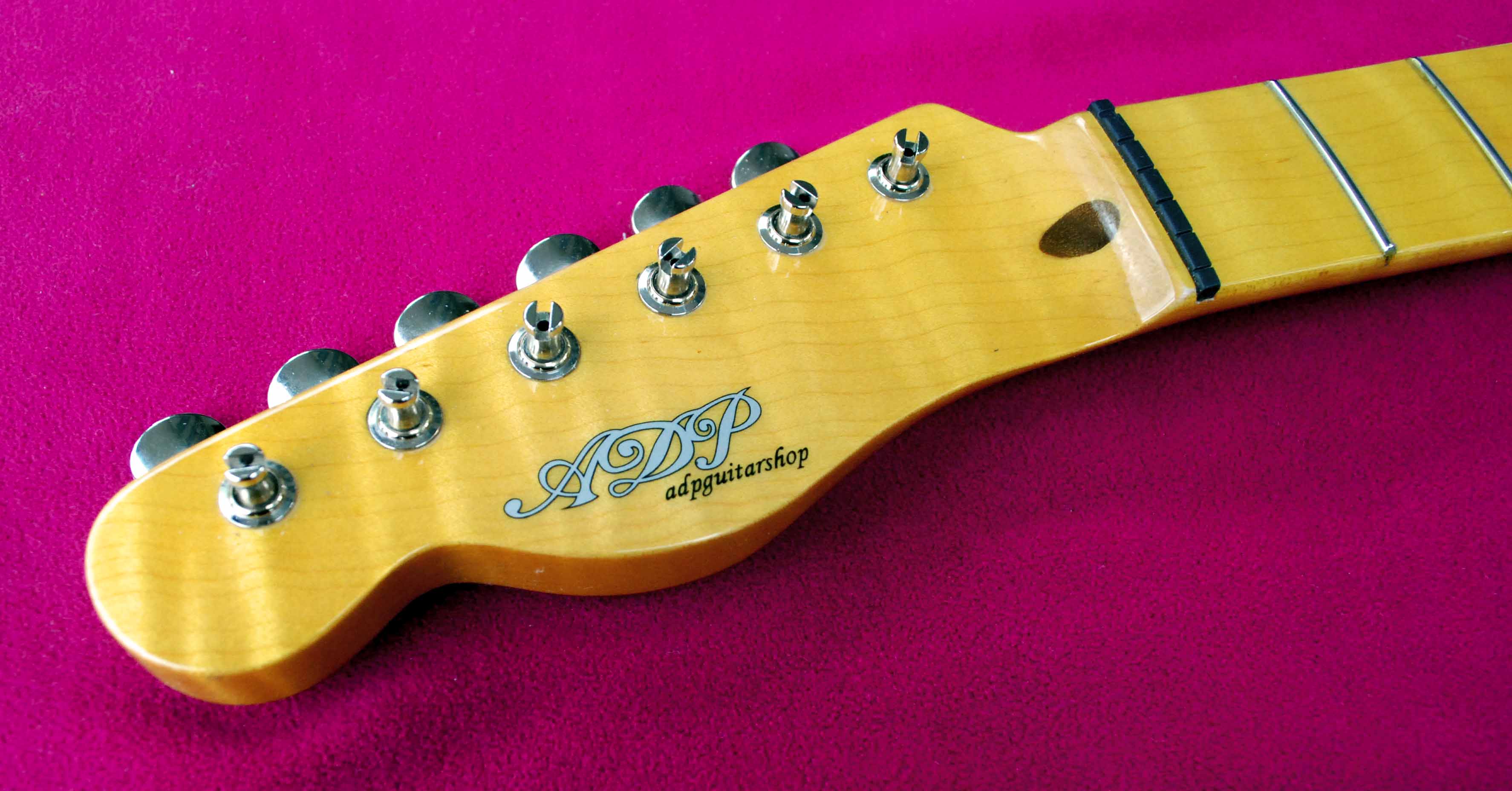 Swamp Ash lefty Body, "honeyScotch" Luthier Varnish (cellulo + schellac) High gloss, Maple neck Radius Thin C .79 (1st) to .89 (12th)