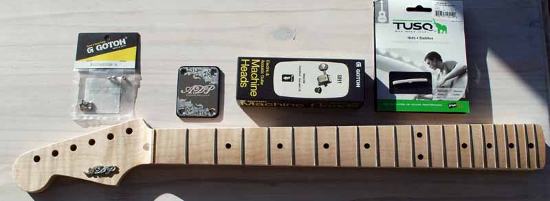 en option : Mécaniques gaucher Gotoh + neck plate "ADP" pour 50 euro (valeur 42 + 24 = 66 euro, soit 16 euro de réduction)