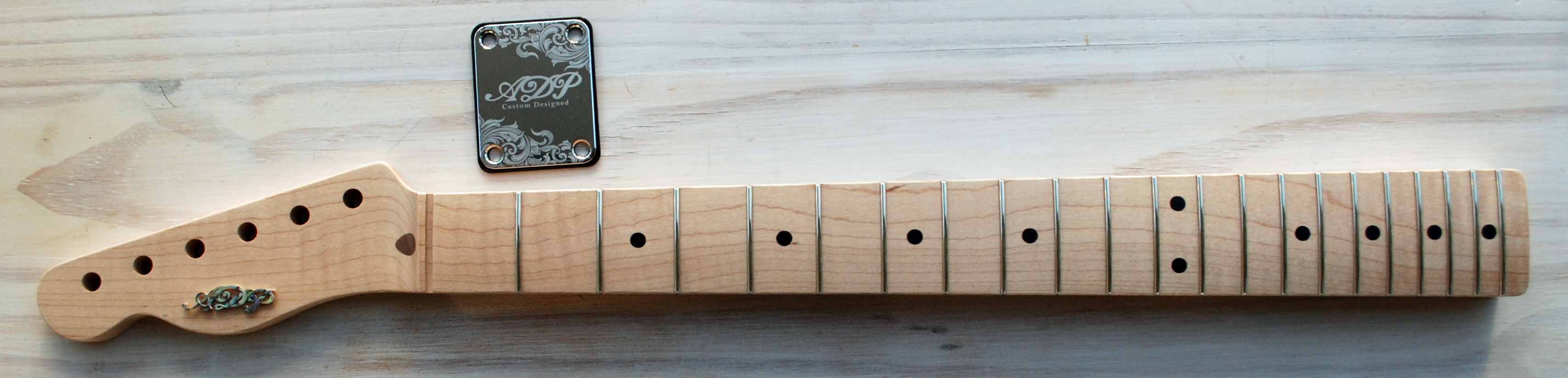 Manche Telecaster Neuf Musikraft / ADP custom Design "Select" garanti 5 ans Erable flammé vernis cellulosique incolore ou vintage à faire (2 à 3 semaines de délais de livraison), avec sillet Tusk et passe corde : 325 euro Livré sans mécaniques. Promotions : (1) incrustation ADP en Abalone (pas décalque !!) Gratuite.