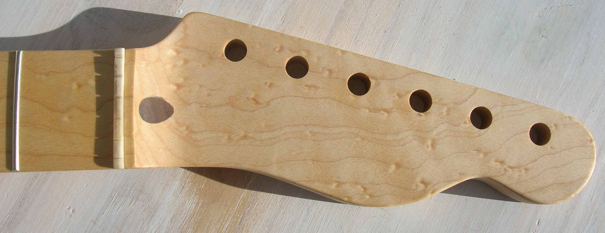 Musikraft brut "Basic" (5 disponible) : sera vernis (nitro-cellulose DP) Ce manche devrait être de qualité équivalente à un HGW1 ou à un manche Japonais. il est en érable 1PC Inscrustations : Black Phenolic; Radius 9.5" - 21 frettes Medium 6105 contour "medium C" avec une épaisseur du manche de 83" (21,12 mm) à la 1 ere frette to .92" (23,4 mm) à la 12 eme. Largeur du manche 1 11/16" au sillet et 2 3/16" au bout du talon. Truss rod simple action réglable au talon. perçage pour des modernes à bain d'huile: Tuner Hole Size: Gotoh/Scaller/Sperzel 10 mm.Un manche basic de qualité à un prix attractif valeur avec vernis cellulo : 300 euro (sillet compris, mécaniques non comprises) - sur commande